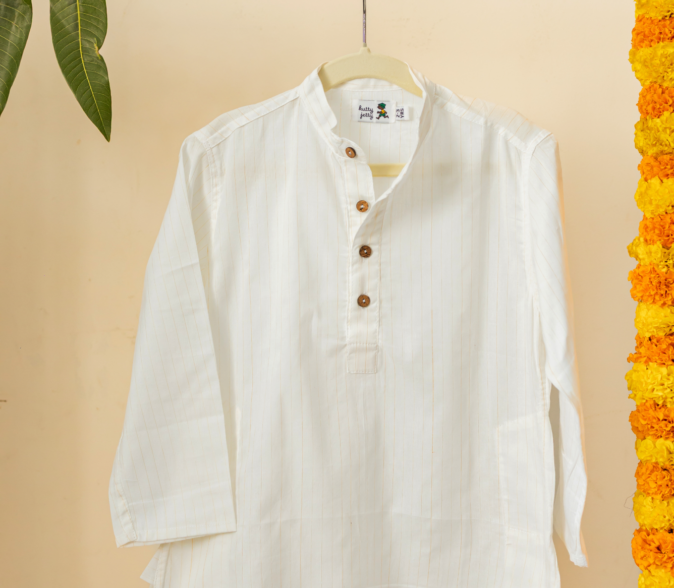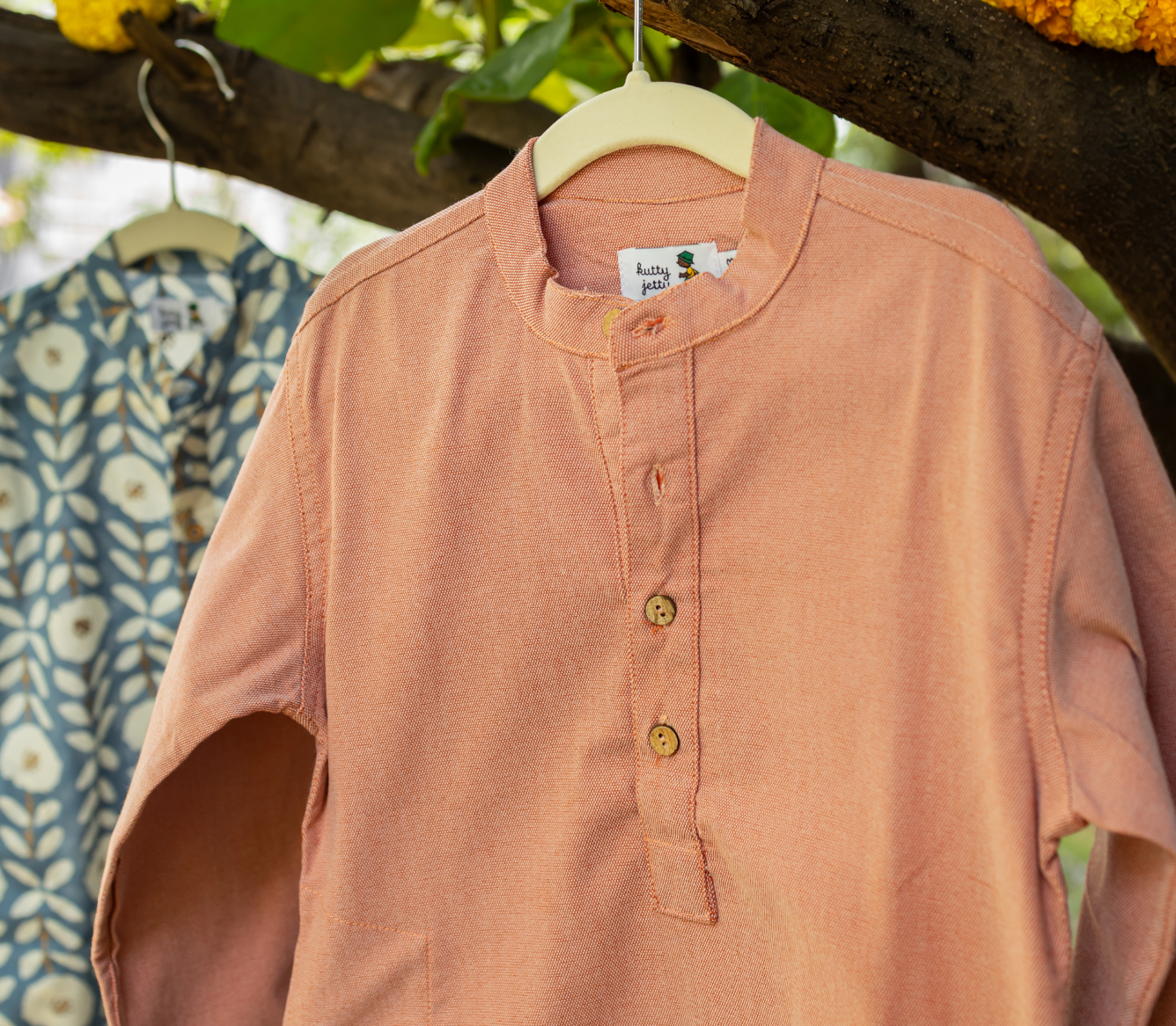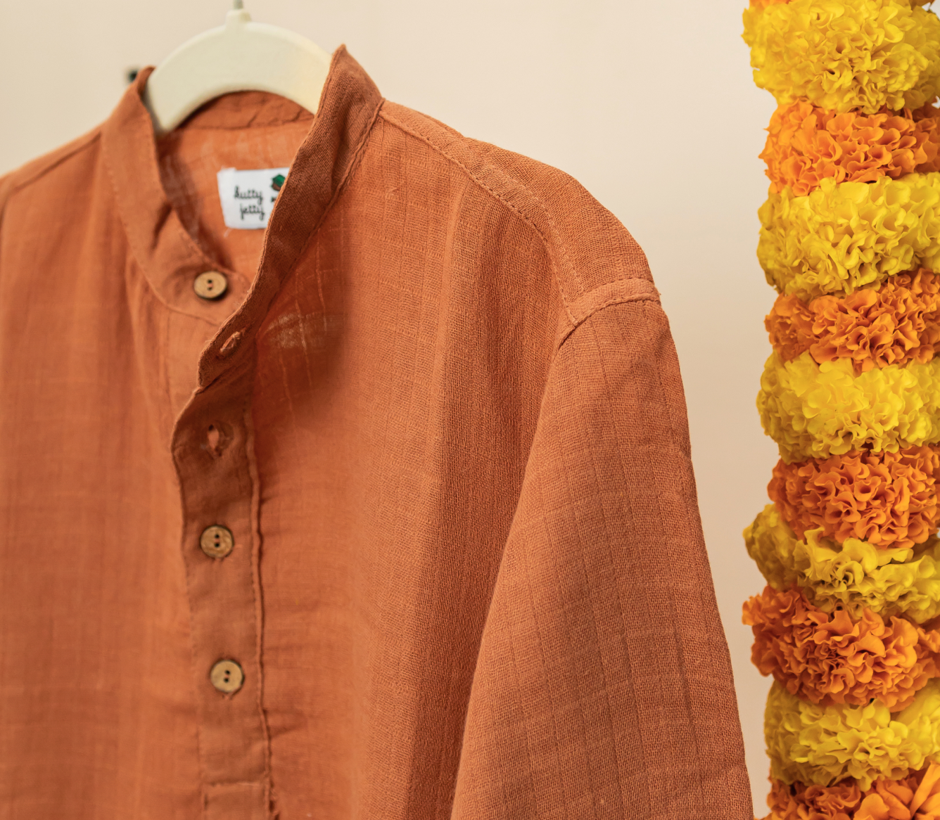 Bright pink, mustard yellow, and earthy rust brown, these kurtas are naturally textured so they never need ironing (but we would still recommend a nice warm steam iron). Perfect for mornings that begin with poojas and end with playground adventures.